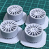 RS05RR風自作ホイール。1/24スケールで18インチになるようにサイズを設定しており、1台分の4本のホイールの商品になります。 ※ホイールのみの購入ではタイヤは付属しません。タイヤ付セットがお得になっております。写真の見本品は塗装されています。 ホイールサイズ(18インチ) 外径 約20.8mm 横幅 11mm 【注意】PCD100 光造形式8K 3Dプリンターで印刷し、積層ピッチは0.2mmです。2次硬化、洗浄は実施済み。 現品は無塗装、形成色はグレーになります。当製品はレジン製で加工にスキルが必要です。中級者以上推奨。 材質はレジンですのでプラモデル用接着剤では接着できません。3Dプリンタで印刷する関係上、積層痕が発生しています。やすりで表面を磨くか、サーフェイサーを吹いたうえで塗装すると積層痕が軽減されます。 サポート材を切り離す際はニッパーなどで一つずつ切り出してください。無理な力がかかると本体にダメージが入る場合があります。 形成色がマーブル状になる場合がございますが、レジン樹脂の色素の沈殿によるもので、そのままお使いいただけます。 A/T社、H/F社それぞれに適応するように別形状のナットパーツが付属します。 ホイールの種類によってブレーキハブとの距離が異なるため、最適なナットパーツを使用して、お好みの位置を調整してください。 使用するホイールの種類によっては加工が必要な場合がございます。サイズが合わない場合は紙やすりで削る又は、マスキングテープを巻くなど加工してお使いください。