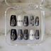 スカリー・J・グレイブス イメージネイルチップ 上段が左手デザイン、下段が右手デザインです。 手描きの柄部分は写真と多少異なる場合があります。 チップ形状:ショートバレリーナ ︎✦︎付属アイテム 粘着グミシールシート2枚・ミニヤスリ・ウッドスティック サイズオーダー品となります。 画像を参考にチップサイズをご確認いただき、お選びください。 爪の一番広い部分の横幅がチップサイズ選択で必要となります。柔らかいメジャーで爪のカーブに合わせてお測りください(柔らかいメジャーがない場合はマスキングテープを爪に貼りペンなどでマークをつけ、そのサイズを定規などで測る方法もございます)。 サイズに迷われた場合・平爪の方は、ヤスリで調節出来るよう大きいサイズの選択がオススメです。 以下、ご注文の際にお送りいただく必要事項となります。 チップサイズ 左手(親指〜小指順): 右手(親指〜小指順): デザインの左右変更を希望される場合は、ご注文の際にご連絡ください。 ︎✦︎イメージ違い・サイズ不一致による返品交換不可となります。 ︎✦︎お使いの端末や閲覧環境により、写真と実物の色味や質感が多少異なって見えることがございます。ご了承ください。 ︎✦︎気泡やダストはチェックしておりますが、趣味で作成している品となりますので気になる方はご遠慮ください。 ︎✦︎保管がしやすいようオマケとしてチップケースにお入れしています。細かい傷がつきやすい素材のため扱いにお気をつけください。 ご注文から発送まで6日ほどお時間を頂戴します。