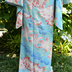 百合と芙蓉に流水模様のぼかしをデザインした反物。 古くなったアンティークの絹のような、柔らかいグラデーションと色味が特徴のデザインです!涼しげな夏色の反物、いかがでしょうか?