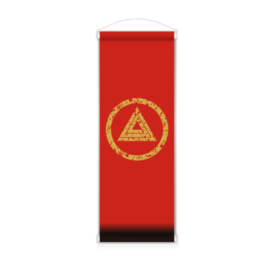 なるわん座招福家紋ミニタペストリー・鱗入三角稲妻(赤))
