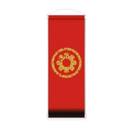 なるわん座招福家紋ミニタペストリー・花形井筒(赤)
