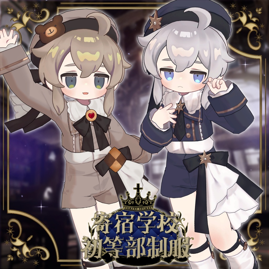 寄宿学校の初等部の制服をイメージした かわいいショート丈のセーラーブレザー衣装です。 アバター本体、髪型は付属していません。 ✂------------------- 対応アバター まめふれんず 使用シェーダー lilToon https://lilxyzw.booth.pm/items/3087170 サンプル使用髪型 https://nightmaredolls.booth.pm/items/6601696 ✦ 寄宿学校初等部制服 ✦ △24,951 Blend Shape ∟シャツ貫通対策 1 ∟装飾ON/OFF 6 PhysBone設定済 ✦ データ内容 ✦ ・unitypackage ∟prefab ∟ビスキュイ ∟ルクバト ∟FBX ∟衣装本体 ∟くまさんクッキー ∟アイスボックスクッキー ∟ハートクッキー ∟Material ∟Texture ・Texture ∟PSD セットアップ環境 Unity 2022.3.22f1 / VCC / PhysBone1.1 / Modular Avatar ✦ 利用規約 ✦ ・データの再配布を禁止します。 ・改変はご自由にどうぞ。 ・その他の規約は元のアバターの規約に準じます。 制作:uro_no_uro https://www.uronouro.com/