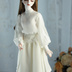 袖にケミカルレースをあしらいエンタシスをイメージしました。 ジョーセットの柔らかなたっぷりギャザーの袖の シアーな素材がドールの繊細さを引き立てます。 *使用材料等* 表地:ポリエステルジョーゼット 装飾:ナイロン+レーヨンレース 縫い糸:ポリエステル ※色につきましてはできるだけ再現に努めておりますが、 ごく淡いニュアンスカラーであり モニターによっても見え方が変わりますことをご了承ください。 ギャザーの出方レースの柄、装飾のつき方は個体差がございますご了承ください
