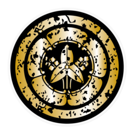 なるわん座招福家紋ステッカー・五瓜ニ立チ沢瀉