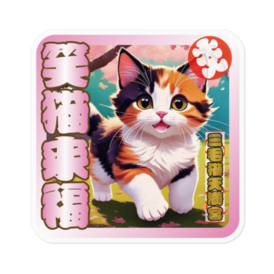 ※なるわん座招福ステッカー三毛猫天満宮お守り(笑猫来福)