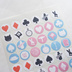 「不思議の国のアリス」にまつわる図柄をドット柄にしてラベルシールにカラー印刷しました。 そのまま貼って装飾にする、メッセージを書く、プレゼントのラッピングに使うなど、用途はさまざま。 「不思議の国のアリス」にまつわるさまざまな図柄をドット柄にしてみました。 トランプもよう、「DRINK ME」の札付きの瓶、うさぎ、キノコ、シルクハット、チェシャ猫のニヤニヤ笑い、ティーカップ、「EAT ME」と書かれたクッキー、バラ、懐中時計、鍵、ドアの15種をドット柄にする前の図柄と併せて収録しました。 全48ピース(24種×2点) シールのサイズ 直径30mm 【素材】 ラベルシール ハイグレードタイプ マット紙・ホワイト 同じ図柄で「アリスのドット柄 レジン封入用フィルム」https://puikko.booth.pm/items/667107 も出品しています。 ※他にもこんなシールがほしいというリクエストがあったらメッセージをお寄せください。できるだけ希望に応えます。 【サイズ】 幅210×高さ297mm(A4判) 【購入の際の注意点】 市販のインクジェットプリンタを使って印刷しているので、図柄がシールの円の中心からずれていることがあります。あらかじめご了承ください。 発送時はA4判のシートを4分割して発送します。