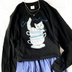【10月下旬発送】猫ティーカップロンT(黒)|長袖Tシャツ