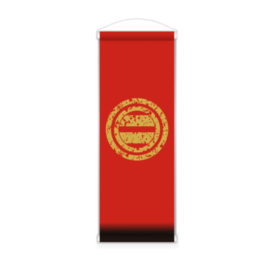 なるわん座招福家紋ミニタペストリー・丸ノ内ニ太二ツ引キ(赤)