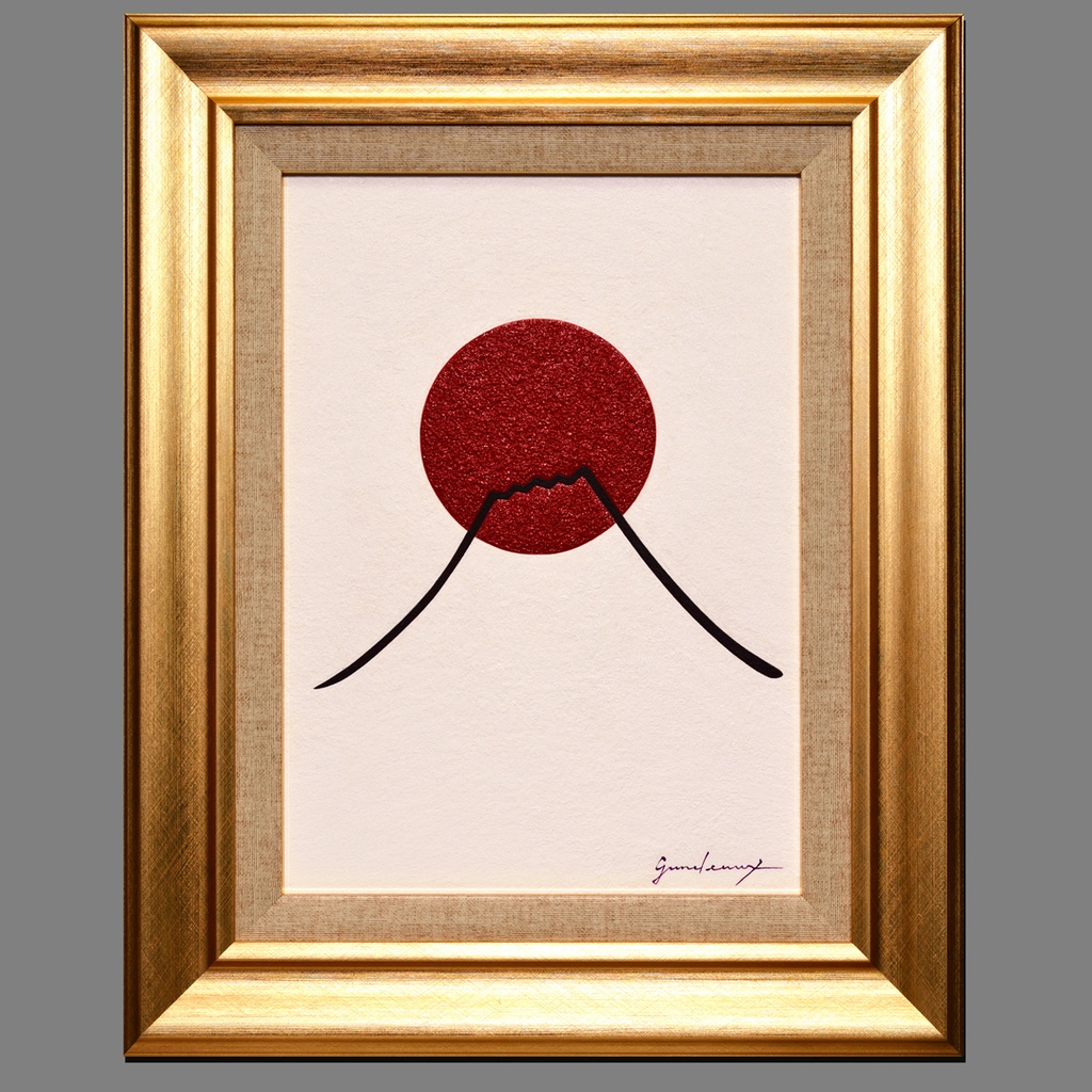 静と動の妙(みょう)●『太陽と富士図』がんどうあつし肉筆油絵画富士山日の出朝日本