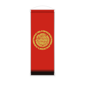 なるわん座招福家紋ミニタペストリー・三浦三ツ引キ(赤)