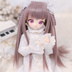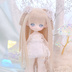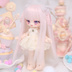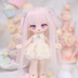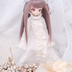 毛先がシャギーのストレートヘアに、くるんと丸めた三つ編みプードルヘアをリボンで留めています。 平置きしていると、三つ編みの輪っかが浮いたような感じになることがありますので、その際はやさしくぎゅっと手の中に収めると落ち着きます。 お届けしたあと、すぐにお使いいただけるように、ウィッグすべてを一つ一つ丁寧に検品、消毒、ドールにかぶせての着用確認、カット、熱処理等を用いての調整や全体的なスタイリング調整をしております。