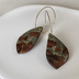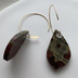 以蔵さんをイメージして制作したピアスです。 不安定な斑のカーキに、爪で引っ掻いたような線、返り血を思わせる濃い赤の模様。 見た瞬間「以蔵さんだ」と思ったピーナッツオブシディアンを、極力シンプルなピアスにしました。 天然石の色みを正確に撮影するの難しいですね……! 最後の写真がいちばん実物に近いと思います。 ご参考までに。 オブシディアンの「後ろ」には小粒のハーキマーダイヤモンドを添え、彼が見失ってしまった光、本当は近くにあった光をイメージしています。 最後に道は分かたれたけれど、以蔵さんにとっての光は、以蔵さんのことを確かに想っていたはずなので。 とはいえ、フープに通しているだけなので、ハーキマーダイヤモンドを前にも、外すことも可能です。 無くさないようにだけ気を付けて、お好みでご着用ください。 固定用のキャッチをお付けします。 使用パーツ ●ピーナッツオブシディアン ●ハーキマーダイヤモンド ●14kgfフラットエンドフープピアス 金具変更 ●可 作り替え ●可 おことわり ●可能な限り丁寧に制作しておりますが、素人のハンドメイド品です。市販品ほどの強度・完成度はございません。ご了承の上、優しく扱っていただけますと幸いです。 ●14kgf、サージカルステンレスは、ともに金属アレルギーが出にくいとされる素材ですが、すべての方にそれが保証されるという訳ではありません。異常を感じられた場合は、すぐ、ご着用をお止めください。 ●天然石を用いているため、作品はすべて一点ものです。いずれも完全に同一デザインでの再販は難しいこと、あらかじめご了承くださいませ。