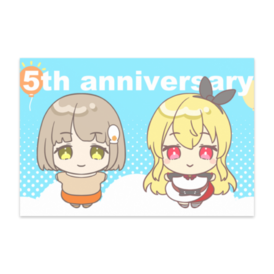 実況グループ「天晴☆ポジティ部‼」の5周年記念ポストカードです。 素材:ヴァンヌーボVGスノーホワイト195kg 絵柄:5周年記念 この商品はpixivFACTORYで作られた商品です。 サンプル画像は完成イメージのため、実物と異なる場合があります。