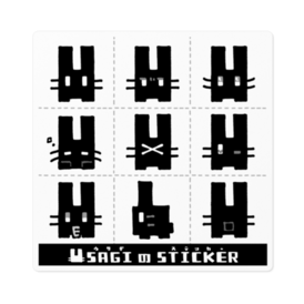 表情や仕草の異なる9匹の「しかくいウサギ」たちが並んだ、正方形(100mm×100mm)のステッカーです。 「白ウサギ」と「黒ウサギ」の2種からお好きなウサギをお選びください。 ※この商品はpixivFACTORYで作られた商品です。 サンプル画像は完成イメージのため、実物と異なる場合があります。