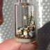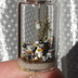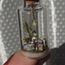瓶・高さ約40mm 直径約15mm 主な材料・ガラス瓶、砂溶きボンド、エポキシパテ 箱サイズ56×35×17mm ナツメヒロ様企画展「二月のネコスキー・猫展」内のミニ企画として制作した 企画展キャラクターネコスキー氏風の作品となります。 https://natsumehiro.com/ 灯火には蓄光塗料を使用しておりますので暗闇やUVライトで蛍光します。 ※注意事項 到着時の破損につきましては対応いたしますのでご連絡願います。 微に入り細に入り実物を見た際に見える細かな傷、 印象の違い、想像されていた色味との違い等 写真から判定できる明確な破損以外の事柄に関しては 対応できかねますのでご了承願います。 全て一点物になりますので個体差があります。 ガラス製品なので思わぬ衝撃で破損する恐れがあります。注意して取り扱ってください。 蓋のコルクは外れる恐れがあるのでアクセサリ等として使用することは絶対にお止めください。 収れん火災や劣化を避けるために直射日光を避けカビ予防のために高温多湿を避けて保管してください。 小さなお子様やペットがいるご家庭は誤飲にお気をつけください。 事故が起きましても責任を負いかねますので予めご了承ください。