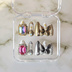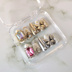 イベント フェアリーガラ イメージネイルチップ 上段が左手デザイン、下段が右手デザインです。 親指のビジューパーツと薬指の真鍮パーツはしっかりめに固定していますが、ケースから取り出す際や爪から外す際などに強く引っ張ったりしないようご注意ください。 チップ形状:アーモンド ︎✦︎付属アイテム 粘着グミシールシート2枚・ミニヤスリ・ウッドスティック サイズオーダー品となります。 画像を参考にチップサイズをご確認いただき、お選びください。 爪の一番広い部分の横幅がチップサイズ選択で必要となります。柔らかいメジャーで爪のカーブに合わせてお測りください(柔らかいメジャーがない場合はマスキングテープを爪に貼りペンなどでマークをつけ、そのサイズを定規などで測る方法もございます)。 サイズに迷われた場合・平爪の方は、ヤスリで調節出来るよう大きいサイズの選択がオススメです。 以下、ご注文の際にお送りいただく必要事項となります。 チップサイズ 左手(親指〜小指順): 右手(親指〜小指順): デザインの左右変更を希望される場合は、ご注文の際にご連絡ください。 ︎✦︎イメージ違い・サイズ不一致による返品交換不可となります。 ︎✦︎お使いの端末や閲覧環境により、写真と実物の色味や質感が多少異なって見えることがございます。ご了承ください。 ︎✦︎気泡やダストはチェックしておりますが、趣味で作成している品となりますので気になる方はご遠慮ください。 ︎✦︎保管がしやすいようオマケとしてチップケースにお入れしています。細かい傷がつきやすい素材のため扱いにお気をつけください。 ご注文から発送まで6日ほどお時間を頂戴します。