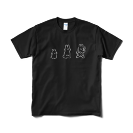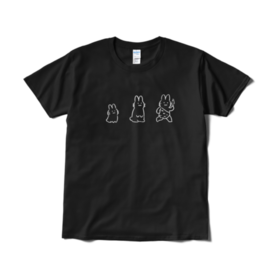 Tシャツ(短納期) - XL - ブラック変幻自在の「HENGENうさぎ」の進化の過程を表しています。 なにも考えていなさそうな顔がチャームポイントです。 ───── この商品はpixivFACTORYで作られた商品です。サンプル画像は完成イメージのため、実物と異なる場合があります。