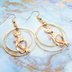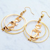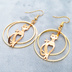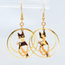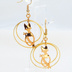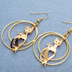 マットゴールドカラー スラリとした猫チャームのダブルリングピアス フープピアス サージカル可