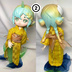 ANTU 潮の秘語、人魚アンティーユ用に制作した浴衣です。 合わせ部分にはマジックテープを使用しておりますので、着崩れにくい仕様になっております。 脇口や袖口は少し広めに作ってありますので、ハンドパーツの取り外しをする事無く着用出来ます。 帯は50cm程度のリボンですので、胴体に二重に巻いて背中でリボン結びをしても良し、一重にしてリボンを長く伸ばしても良し…お好みの結び方で着付けが出来ます。 厚紙に巻き付けてマスキングテープ留めをしてのお届けとなりますので、折り癖が付いている場合はお手数ですが低めの温度でのアイロンがけをしてからご使用ください。 ※アンティーユに付属しているシェルブラや腰ヒレパーツを着けたままですと、前が閉まりません。シェルブラや腰ヒレパーツは外した上での着用を想定しています。 ※同メーカーの「ADOU(アドゥー)&ALU(アリュー):龍と出会い夢」にも着用可能ですが、腰の羽が干渉してしまいます。 こちらも外した上での着用であれば可能です。 【セット内容】 浴衣本体 帯用リボン
