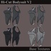 The V2 version is a remake of the original bodysuit with better details, optimization, and customization options. A high waistline bodysuit with detailed textures and segments. Created with ease of customization in mind. 8 base textures and 3 transparent masks are included. Various texture mask variants are provided for easy customization. lilToon and Poiyomi shaders provided, with many more possible colour variations originating from these textures. V2バージョンはオリジナルボディスーツの完全リメイク版で、ディテール・最適化・カスタマイズ性が向上。 ハイウエスト仕様のボディスーツに詳細なテクスチャとセグメントを実装。カスタマイズの容易さを考慮した設計です。 基本テクスチャ8種と透明マスク3種を同梱。各種テクスチャマスクバリアントで簡単カスタマイズが可能。 lilToonとPoiyomiシェーダー対応で、これらのテクスチャからさらに多彩なカラーバリエーションが作成できます。 V2 버전은 오리지널 바디수트를 리메이크하여 디테일, 최적화, 커스터마이징 옵션이 개선되었습니다. 하이웨이스트 디자인의 바디수트에 세밀한 텍스처와 세그먼트를 적용했습니다. 쉽게 커스터마이징할 수 있도록 제작되었습니다. 기본 텍스처 8종과 투명 마스크 3종이 포함되어 있으며, 다양한 텍스처 마스크 변형으로 간편한 커스터마이징이 가능합니다. lilToon 및 Poiyomi 셰이더를 지원하여 이 텍스처들로부터 더욱 다양한 색상 변형을 만들 수 있습니다.