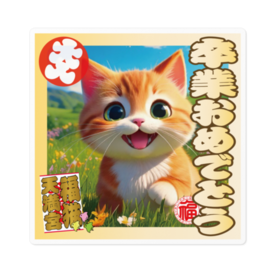 ステッカー - 100 x 100 (mm)なるわん座招福ステッカー卒業おめでとう(猫)8 100 x 100 (mm)四方に収まるステッカーです。 なるわん座限定ステッカーで、 開運招福!商売繫盛!間違いなし! この商品はpixivFACTORYで作られた商品です。 サンプル画像は完成イメージのため、 実物と異なる場合があります。 ※なるわんのウェブサイト、なるわん座では、 たくさんのPNG画像が無料ダウンロードできますので、 そちらも、ぜひご利用ください! こちらです! 無料販促!面白図解!商売繫盛!なるわん座! https://naruwanza.com/