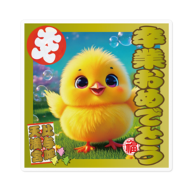 ステッカー - 100 x 100 (mm)なるわん座招福ステッカー卒業おめでとう(ひよこ)4 100 x 100 (mm)四方に収まるステッカーです。 なるわん座限定ステッカーで、 開運招福!商売繫盛!間違いなし! この商品はpixivFACTORYで作られた商品です。 サンプル画像は完成イメージのため、 実物と異なる場合があります。 ※なるわんのウェブサイト、なるわん座では、 たくさんのPNG画像が無料ダウンロードできますので、 そちらも、ぜひご利用ください! こちらです! 無料販促!面白図解!商売繫盛!なるわん座! https://naruwanza.com/