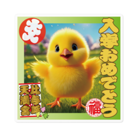 ステッカー - 100 x 100 (mm)なるわん座招福ステッカー入学おめでとう(ひよこ)6 100 x 100 (mm)四方に収まるステッカーです。 なるわん座限定ステッカーで、 開運招福!商売繫盛!間違いなし! この商品はpixivFACTORYで作られた商品です。 サンプル画像は完成イメージのため、 実物と異なる場合があります。 ※なるわんのウェブサイト、なるわん座では、 たくさんのPNG画像が無料ダウンロードできますので、 そちらも、ぜひご利用ください! こちらです! 無料販促!面白図解!商売繫盛!なるわん座! https://naruwanza.com/
