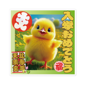 ステッカー - 100 x 100 (mm)なるわん座招福ステッカー入学おめでとう(ひよこ)4 100 x 100 (mm)四方に収まるステッカーです。 なるわん座限定ステッカーで、 開運招福!商売繫盛!間違いなし! この商品はpixivFACTORYで作られた商品です。 サンプル画像は完成イメージのため、 実物と異なる場合があります。 ※なるわんのウェブサイト、なるわん座では、 たくさんのPNG画像が無料ダウンロードできますので、 そちらも、ぜひご利用ください! こちらです! 無料販促!面白図解!商売繫盛!なるわん座! https://naruwanza.com/