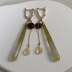 ゆきっちゃんとの拝借行脚と、その果てに得たものをイメージして制作したピアスです。 拝借するのは土だけだと言った舌の根も乾かぬうちに「ここらでは質の良い竹が採れるんです」と拝借された気の毒な竹を、グリーンレースアゲートで。目的であった土には、コイン型のブランデーオパールを用いました。チェーンの先には、彼との拝借行脚の果てに生み出され、晋作の命を救った薬、現実の当時には存在することのなかった奇跡の雫を、遊色が強く煌めく、超高品質のエチオピア産プレシャスオパールで表現しています。 今回もお色み確認用の近接写真を掲載しています。 ご確認ください。 キャッチ要らずで失くしにくい、デザインフックを使用しています。 使用パーツ ●グリーンレースアゲート ●ブランデーオパール ●エチオピア産プレシャスオパール ●14kgfフックピアス ●14kgfワイヤー ●14kgf丸カン ●14kgfチェーン 金具変更 ●可 作り替え ●可 おことわり ●可能な限り丁寧に制作しておりますが、素人のハンドメイド品です。市販品ほどの強度・完成度はございません。ご了承の上、優しく扱っていただけますと幸いです。 ●14kgf、サージカルステンレスは、ともに金属アレルギーが出にくいとされる素材ですが、すべての方にそれが保証されるという訳ではありません。異常を感じられた場合は、すぐ、ご着用をお止めください。 ●天然石を用いているため、作品はすべて一点ものです。いずれも完全に同一デザインでの再販は難しいこと、あらかじめご了承くださいませ。