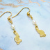 14KGF ゴールドフィルド 可愛い猫シルエットモチーフと淡水パールのコンパクトなピアス