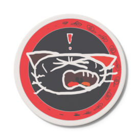ねこのティーチくんの仰天したコバヤシくんの丸いかわいいコースターです