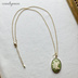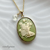 【送料込み】ライトグリーンのお花の妖精カメオと透明感のある天然石レモンクォーツのネックレス