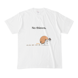 Tシャツ - XL - 白てんこ盛りの卵をぬすみだした、卵泥棒オヴィラプトル。 …あれ?でも…袋に穴が… *この商品はpixivFACTORYで作られた商品です。サンプル画像は完成イメージのため、実物と異なる場合があります。