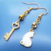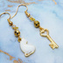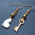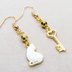 ゴールドカラー 振り向き白猫と鍵のコンパクトなアシンメトリーピアス サージカル可