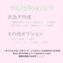 ご覧頂きありがとうございます! ぬい服のフルオーダーのオーダーページです(՞ ܸ.ˬ.ܸ՞)” 『フルオーダー』 対応は ・10~12cmサイズ ・ちびぐるみサイズ ・16cmサイズ ・20cmサイズ など どんなデザインでも1度お気軽に ご相談どうぞ! 【料金表】 基本料金:8200円 ※デザインにより+1500円で特別オーダー料金を追加させて頂くことがございます(⋆ᴗ͈ˬᴗ͈)” ※デザインに関するオプション料金はMAX1500円ですので高くても1つ9700円におさまるかとおもいます🤍 その際はご確認もさせて頂きますのでご安心くださいませ。 オプション ●スイーツオプション:+1000円 ● お急ぎ(1週間以内の制作):+1000円 ● お急ぎ+a(3日以内の制作):+2000円 ● 丸カン追加:+150円 ●ショルダーチェーン追加:+500 ●17cm以上のぬい服:+1000円 【オーダーの手順】 ①オーダー希望の旨とサイズ、デザインのご希望をXのDMにてお願いします! ②専用ご相談ページお作りしますのでそちらからご購入よろしくお願いいたします。 ④ご購入の翌日以降3~4週間程度で作成します。 (資材の注文など必要な場合はそれ以上かかることもございます。) ⑤商品完成次第ご連絡し、確認ページにて確認して頂き問題なければそのままラッピング・梱包し迅速に発送いたします! 【オーダーシート記入例】 ♡サイズ:16cmおすわり ♡耳の形:ねこ ♡ファー生地:ピンク ♡内耳・足裏生地: 白サテンレース(耳周りのレース有) ♡リボン:白とピンクで いちごアラモードシリーズ風のリボン ♡センターパーツ:白またはクリア ♡備考: ホイップさくらんぼ右側に! 白のチビリボンをたくさん! 全体的にフリフリに! など ※ファーの色は淡い色ですとカラーチャートにないものでもご対応可能な場合もありますのでお気軽にお声掛けください! ※私のXのDMにてお送り頂けますと幸いです。 ぬい服 ぬい服オーダー おすわりぬい服 ぬいぐるみ 推し活 ロリータ 量産型