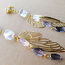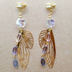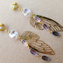 ---------------------------------------------------------------------------------- こちらは【一次創作イベントオンラインアングラっぽいやつ。~虹色の幻覚を見よう。vol.06】・ 【イベントに夢中!5〜魔法に夢中〜】】に出品の作品です。 魔法使いの小物・アクセサリーをテーマに作りました。 ---------------------------------------------------------------------------------- 繊細でリアルな模様が印象的な大きな羽根の形のメタルパーツをメインに、透明感のあるテーブルカットのガラスビーズを組み合わせたイヤリングです。 ※金属アレルギー、メッキ加工が肌に合わない方は注文をお控えください。
