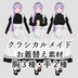 クラシカルなメイド衣装の素材です。 立ち絵(首から上)に合わせてご使用ください。男女兼用。 モブにも使いやすいと思います。 色変えなどは自由ですが、二次配布はしないでください。 モデル https://x.com/SumiuraHasu 『手を広げている』商品内容 1 頭(ホワイトブリム) 2 体1(胸がSサイズ) 3 体2(胸がMサイズ) 4 体3(胸がLサイズ) 5 足(黒い靴) 『手を前で組んでいる』商品内容 1 頭(ホワイトブリム) 2 体4(胸がSサイズ) 3 体5(胸がMサイズ) 4 体6(胸がLサイズ) 5 足(黒い靴) 『支援版』商品内容 全部入ってます! 1と5は同じものなので、全部で8点です。 胸Sサイズは男性でも使いやすいと思います。 『足』の素材を別にしているのは、身長の調整のためです。 『体』の下を縮めるともう少し身長が調整しやすいと思います。
