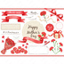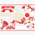 母の日の赤いカーネーションの花束と様々なリボンのデザインあしらいフレームセット おしゃれな手書き水彩風のイラスト