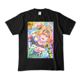 黒地のTシャツです。 サイズはS,M,L,XLの4種です。 この商品はpixivFACTORYで作られた商品です。サンプル画像は完成イメージのため、実物と異なる場合があります。