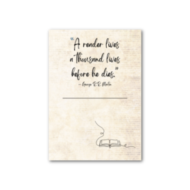 フォト風カード - 縦 - 片面📖 あなたの読書に、静かな余白を。 George R.R. Martinの名言をあしらった、縦長フォト風カードです。 “A reader lives a thousand lives before he dies.” しおりとして本に挟むとぴったりのデザイン。 光沢感のある厚手のフォト用紙 1枚ずつオンデマンドでお届けします 🎁 自分用にも、読書好きな友人への贈り物にも。