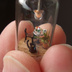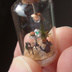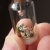 瓶・高さ約40mm 直径約15mm 主な材料・ガラス瓶、砂溶きボンド、エポキシパテ 箱サイズ56×35×17mm 灯火には蓄光塗料を使用しておりますので暗闇やUVライトで蛍光します。 ※注意事項 到着時の破損につきましては対応いたしますのでご連絡願います。 微に入り細に入り実物を見た際に見える細かな傷、 印象の違い、想像されていた色味との違い等 写真から判定できる明確な破損以外の事柄に関しては 対応できかねますのでご了承願います。 全て一点物になりますので個体差があります。 ガラス製品なので思わぬ衝撃で破損する恐れがあります。注意して取り扱ってください。 蓋のコルクは外れる恐れがあるのでアクセサリ等として使用することは絶対にお止めください。 収れん火災や劣化を避けるために直射日光を避けカビ予防のために高温多湿を避けて保管してください。 小さなお子様やペットがいるご家庭は誤飲にお気をつけください。 事故が起きましても責任を負いかねますので予めご了承ください。