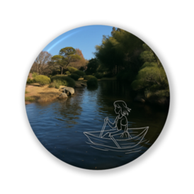 静かな庭の舟旅|缶バッジ(line & light)