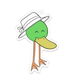 アクリルキーホルダー - 70 x 70 (mm)帽子部分が透過されたダック。おでかけにどうぞ。