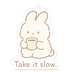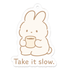 ゆっくり、ふんわり過ごしたい日にぴったり。 手描き風のうさぎが、あたたかいコーヒーをぎゅっと抱えて。 Take it slow. 今日も、あなたのペースで。