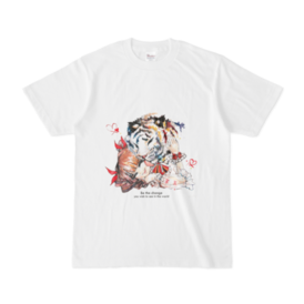 このオリジナルアートTシャツは、「Be the change you wish to see in the world.(あなたが見たいと願う変化に、あなた自身がなりなさい)」というメッセージと共に、虎に優しく抱かれる少女を描いています。 勇気・癒し・変化の象徴として、あなたの内に眠る力を思い出させてくれる一枚。日常の中で、自分を励ましたい時や、大切な人へのギフトにもぴったりです。 サイズ展開:S/M/L/XL 素材:コットン100%(柔らかく着心地の良い生地) This item will be made by pixivFACTORY. The image is auto-generated so it may have slightly different from the actual item.