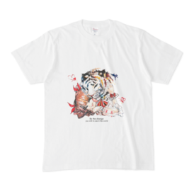 虎に抱かれる少女「世界を変える力はあなたに」Tシャツ