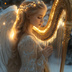 「光の調べ - 天使と黄金のハープ」幻想的アート作品
