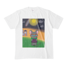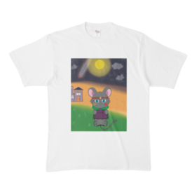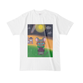 夜空の下で座っているプラネスタ 白-Tシャツ