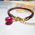 『刀剣乱舞』大倶利伽羅をイメージして作成した組み紐のブレスレットです。素材は刺繍糸ですので伸縮性はありませんがアジャスターで長さ調節が可能です。細身で軽く、さりげないデザインですので普段使いにオススメです☆バックチャームとしてお遣いいただいても可愛いかと思います! 長さ:約15㎝(+アジャスター部分6㎝) 黒・エンジ・こげ茶・金の四色の刺繍糸で組んでいます。渋めの赤(チャーム)は衣装からのイメージです。 ☆送付について☆ 郵便局から普通郵便にて送らせていただきたいと思います。 郵送中の事故については当方では責任を負い兼ねますので何卒 ご了承ください。迅速かつ丁寧な対応を心掛けます。 ※注意※ ご購入いただいた方に喜んでいただけるような素敵な物を作りたいと心掛けておりますが、ハンドメイド作品だということをご理解いただけると幸いですm(u_u)m
