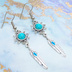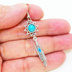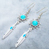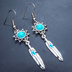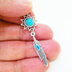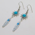 シルバーカラー フェザーとターコイズのひまわりを組合せたスリムなピアス サージカル可